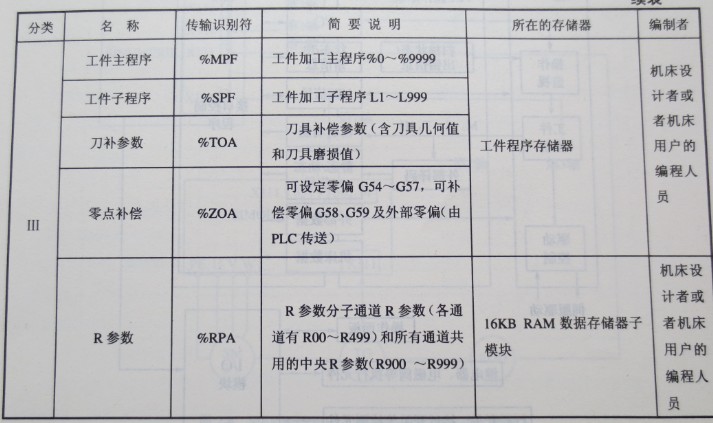?使用SIEMENS 810T/M系統的數控機床軟件部分可分為啟動軟件、NC和PLC系統軟件、PLC用戶軟件、機床數據、參數設置文件、工件程序等,詳見表2-2.其中II、III類程序、數據存儲在NC系統的隨機存儲器中,是針對具體機床的,存儲這些數據的存儲器機床斷電時是受電池保護的,如果電池失效這些數據將丟失。所以,用戶需要將這些數據傳出,做電子備份。